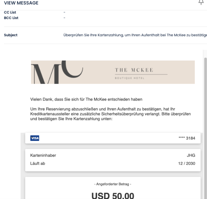 Sistem, güvenli bir 3DS onay e-postasını otomatik olarak misafire gönderir. Bu e-posta, misafiri bankalarının güvenli sayfasına yönlendiren bir bağlantı içerir.