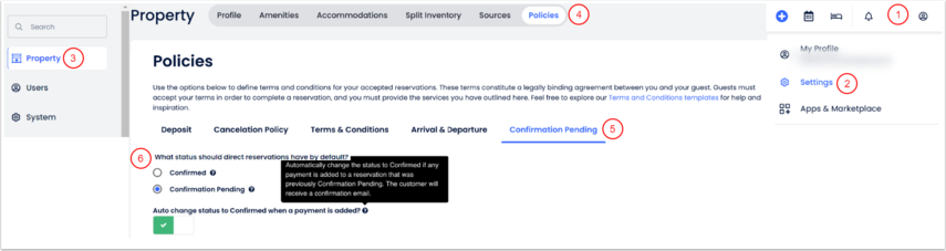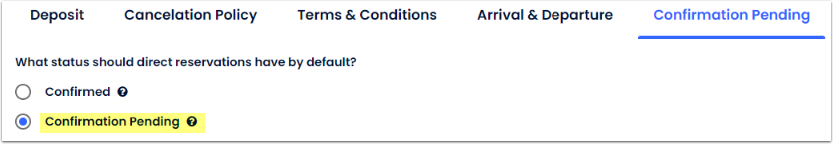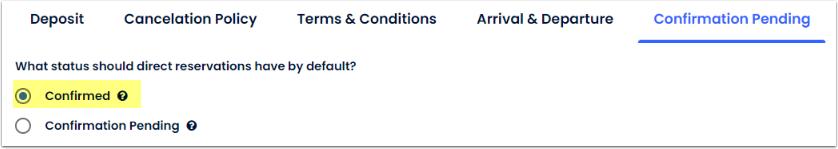 Doğrudan rezervasyonlar alındığında, tesisinin Politikalarına bağlı olarak durumu Onaylandı veya Onay Bekliyor olarak ayarlamayı seçebilirsin.