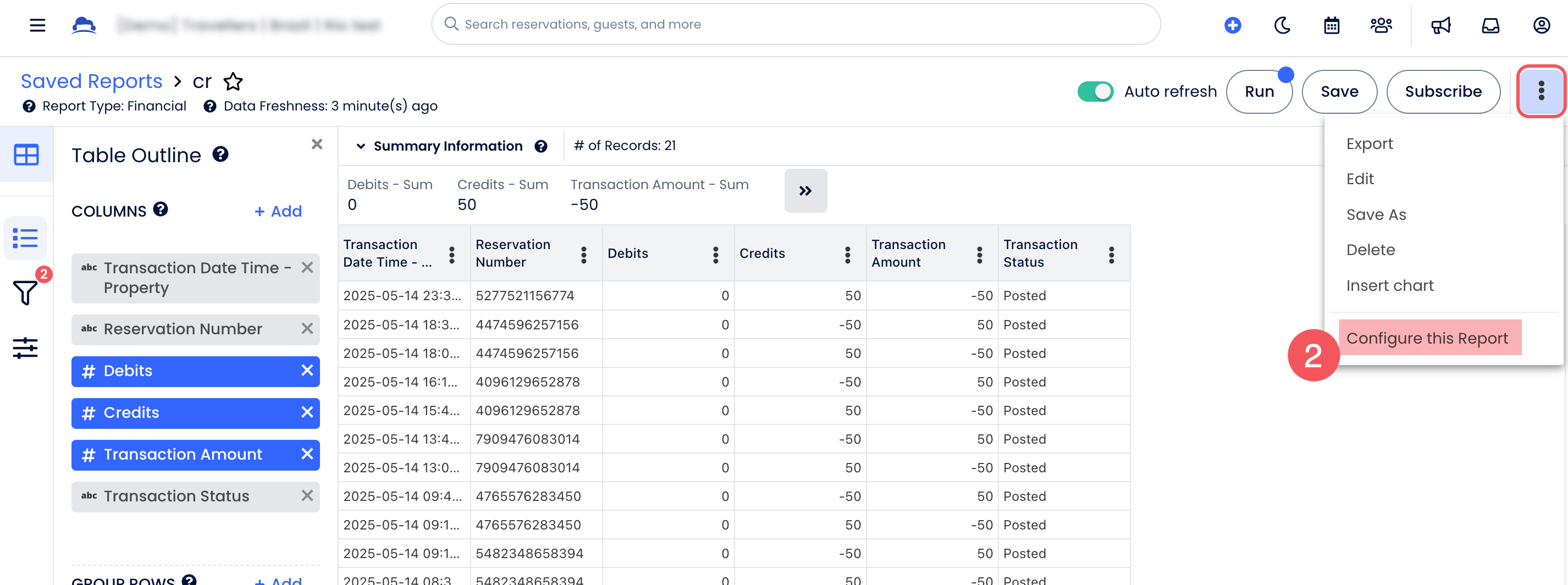 - Kaydedilmiş Raporlar bölümüne git ve özel raporunu aç.