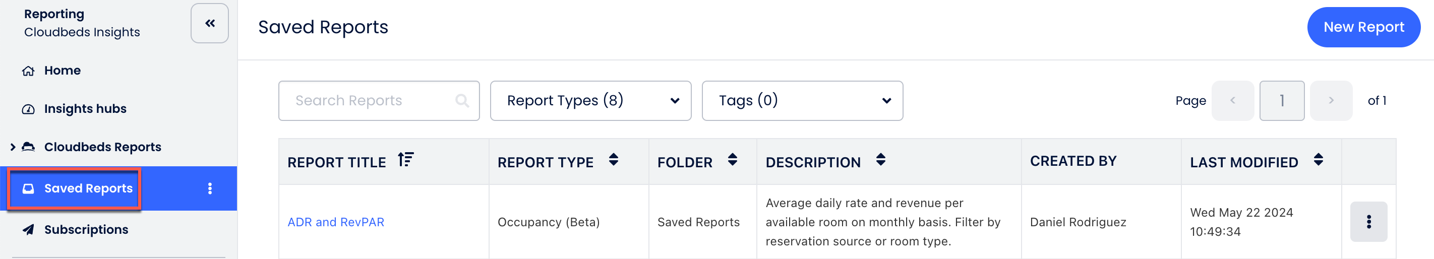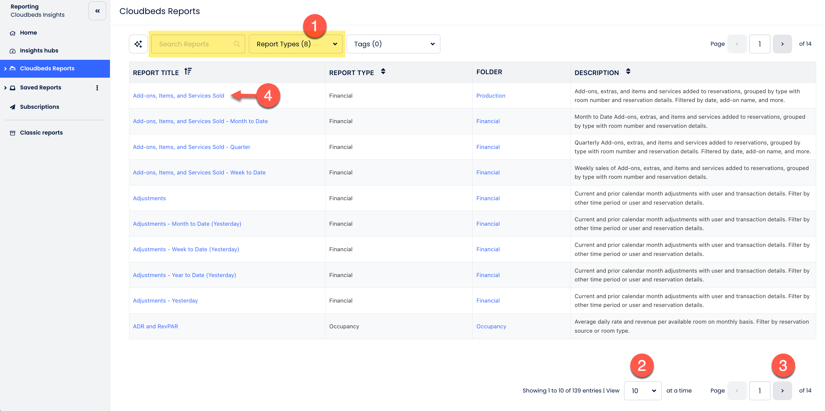 İhtiyaçlarına en uygun raporları bulmanın daha hızlı bir yolu var. Daha fazla bilgi için, bu rehberdeki talimatlara göz at: Cloudbeds Intelligence Explore kullanarak raporlarını bul.