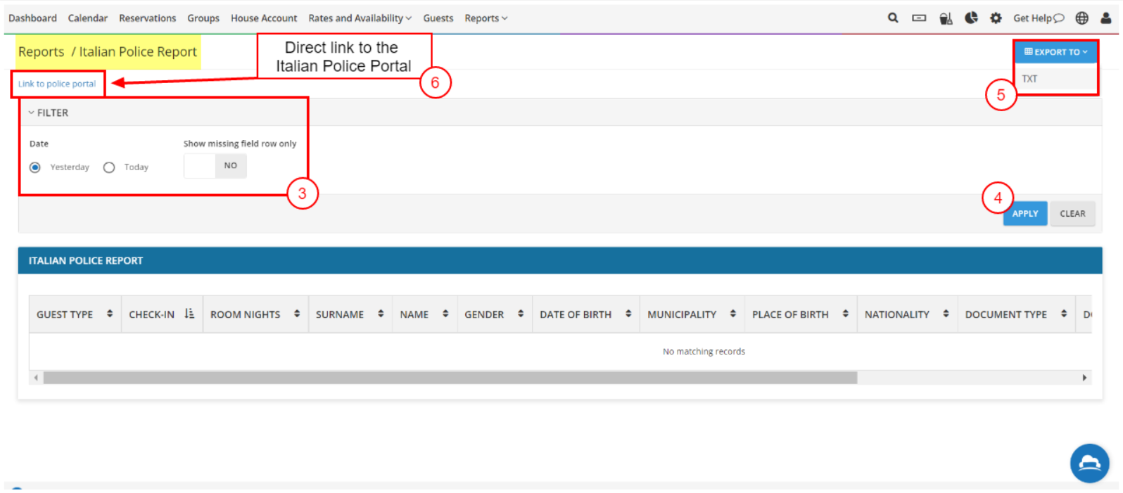 Bu adımlar, İtalyan Polis Raporunu nasıl oluşturacağını ve gerekli verileri İtalyan Polis Portalı üzerinden gönderilmek üzere nasıl indireceğini anlatır.