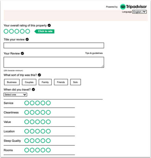 Misafir bağlantıya tıkladığında, TripAdvisor tarafından sağlanan beş inceleme sorusunu tamamlamak üzere yönlendirilir.