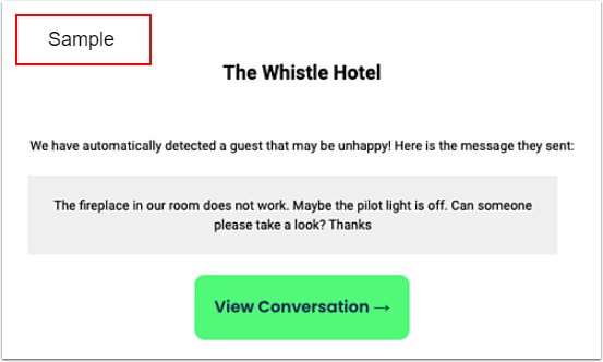 Memnun olmayan misafirleri yakından takip et ve kötü bir incelemeyi iyiye çevir. Yönetici ekip, misafirlerden olumsuz mesajlar geldiğinde e-posta uyarıları alacak.