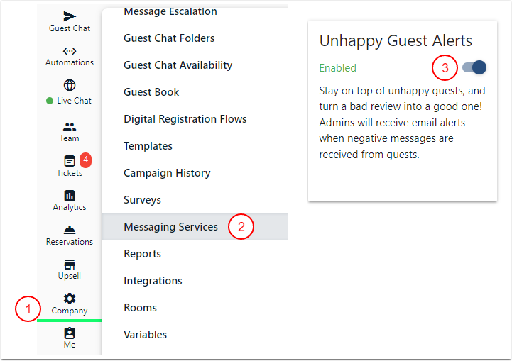 - Etkinleştirildiğinde, platformun otomatik olarak yönetici ekibine memnun olmayan misafirler hakkında e-posta gönderecek