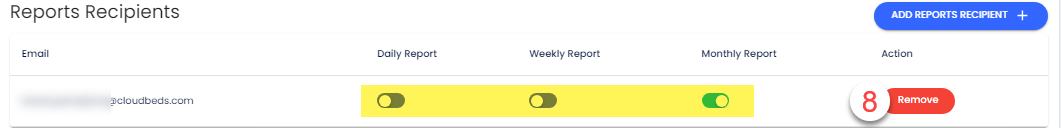 Cloudbeds Guest Experience, Günlük, haftalık ve aylık durum raporlarını Raporlar sayfasında listelenen alıcılara gönderir.