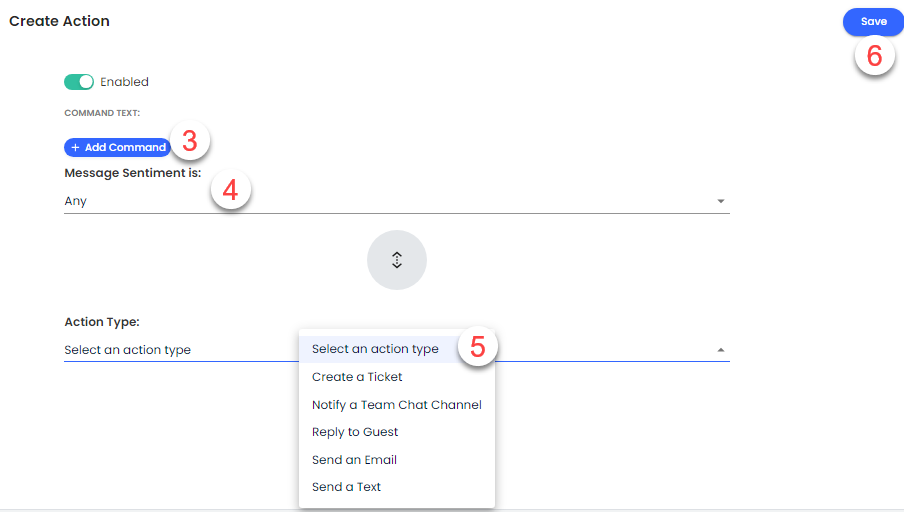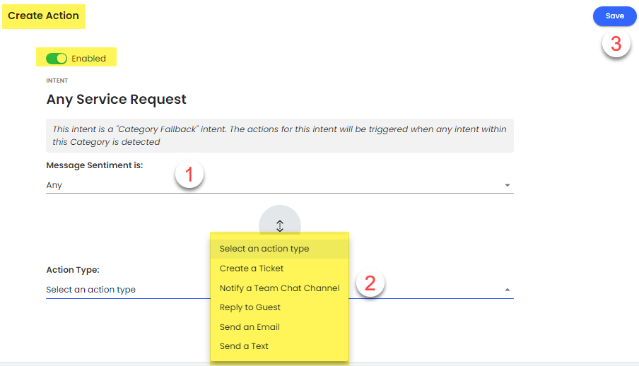 Ayarlanan duyguya (pozitif, negatif) sahip misafir mesajları bu tetikleyiciyi çalıştıracaktır.