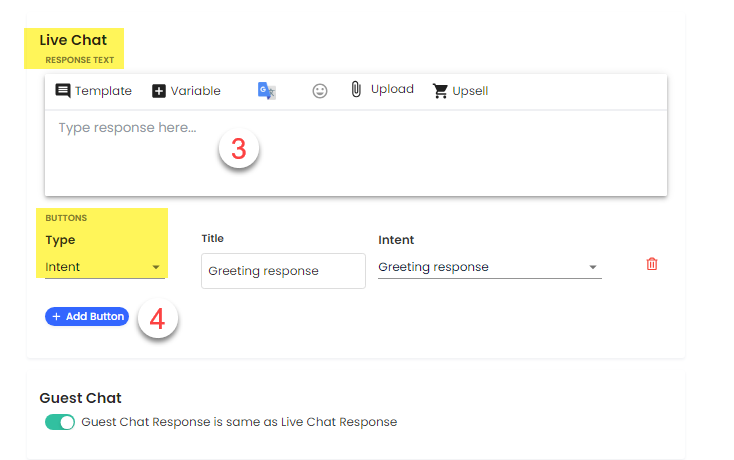 - Bir yanıt düğmesi ekle (isteğe bağlı - yalnızca Canlı Sohbet yanıtlarında kullanılabilir)