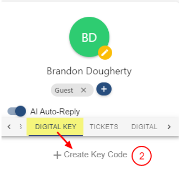 - Açık bir mesajdayken, misafir profilinde Dijital Anahtar bölümünü + işaretine tıklayarak genişlet.