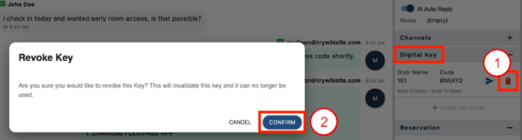 Cloudbeds Guest Experience, pin kodu misafir Sohbeti içinde manuel olarak oluşturulup farklı bir zaman seçilmedikçe, giriş ve çıkış saatlerini Geçersiz kılmaz.