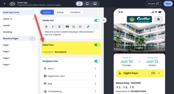 Misafir Uygulaması özelliğin varsa, RemoteLock entegrasyonunu Misafir Uygulaması Ana Sayfası ayarlarında etkinleştirebilirsin.