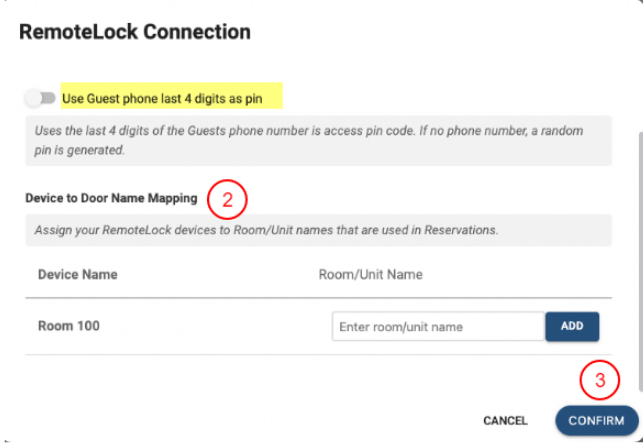 - Her Kilit/Cihaz için Cloudbeds Guest Experience'te kullanılan Rezervasyon Oda Adını gir. Birden fazla metin değeri kullanılabilir.
