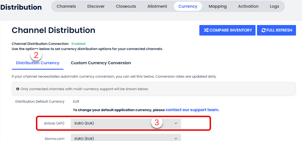 Örnek: Varsayılan para birimin USD olarak ayarlanmışsa, ancak Airbnb (API) kanal para birimin Airbnb hesabında EUR ise, Cloudbeds PMS’de Airbnb para birimini EUR olarak ayarlaman gerekir.